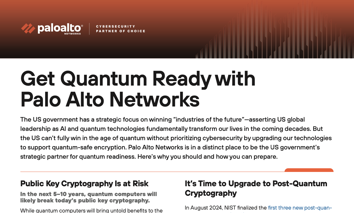 <p>The US government has a strategic focus on winning “industries of the future”—asserting US global leadership as AI and quantum technologies fundamentally transform our lives in the coming decades. But the US can’t fully win in the age of quantum without prioritizing cybersecurity by upgrading our technologies to support quantum-safe encryption. Palo Alto Networks is in a distinct place to be the US government’s strategic partner for quantum readiness. Here’s why you should and how you can prepare.</p>