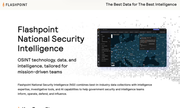 OSINT tech, data, and intelligence, for mission-driven teams. Learn how Flashpoint National Security Intelligence (NSI) combines best-in-industry data collections with intelligence expertise, investigative tools, and AI capabilities to help government security and intelligence teams inform, operate, defend, and influence.</p>