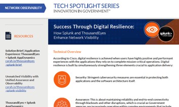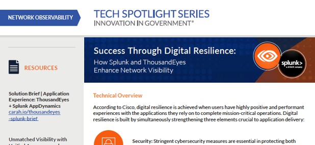 <p>Through their Better Together partnership, Splunk and ThousandEyes strengthen the digital resilience of the Public Sector through network observability. Splunk intelligence functions atop a data lake, translating the unstructured mass of data into different visualizations and dashboards.</p>