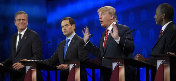 Fifteen Republican presidential candidates square off on the size and role of the federal government.